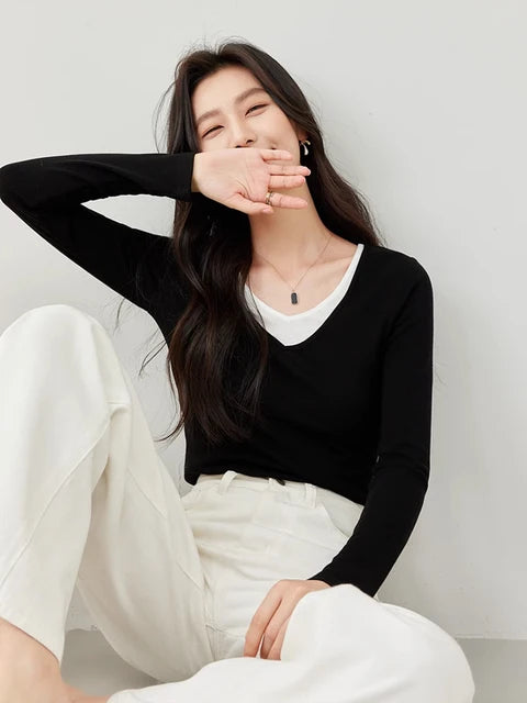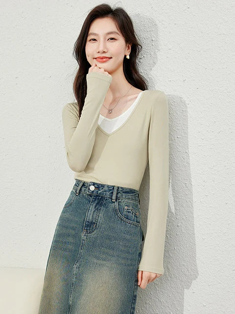 Upgrade your wardrobe with the Vimly V-neck Spliced Slim Pullover. Made with high-quality material, this pullover features a flattering V-neck design and slim fit silhouette. Perfect for any occasion, this pullover will elevate your style and keep you comfortable all day long.